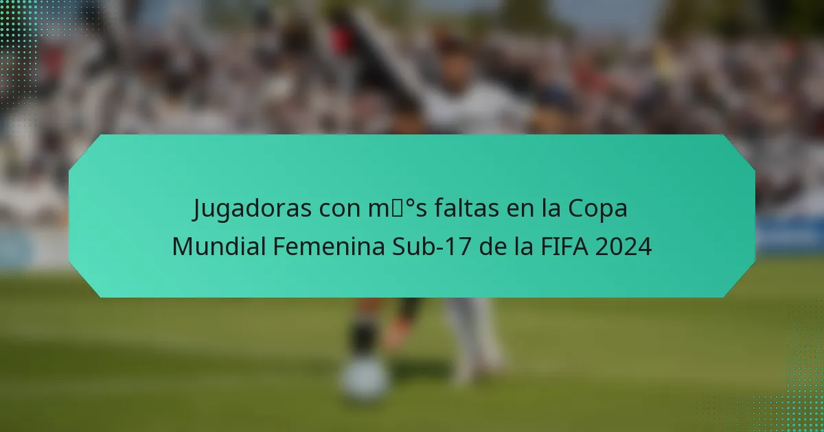 En la Copa Mundial Femenina Sub-17 de la FIFA 2024, varios jugadores se han destacado por su estilo de juego agresivo, resultando en un alto número de faltas. Estos jugadores han acumulado un conteo significativo de faltas, impactando las estrategias de sus equipos y los resultados de los partidos.