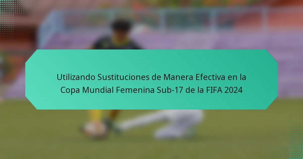 Las sustituciones efectivas en la Copa Mundial Femenina Sub-17 de la FIFA 2024 pueden influir significativamente en los resultados de los partidos. Las prácticas clave incluyen el momento de las sustituciones, los criterios de selección de jugadores y las estrategias para gestionar la fatiga, considerando la dinámica general del juego.